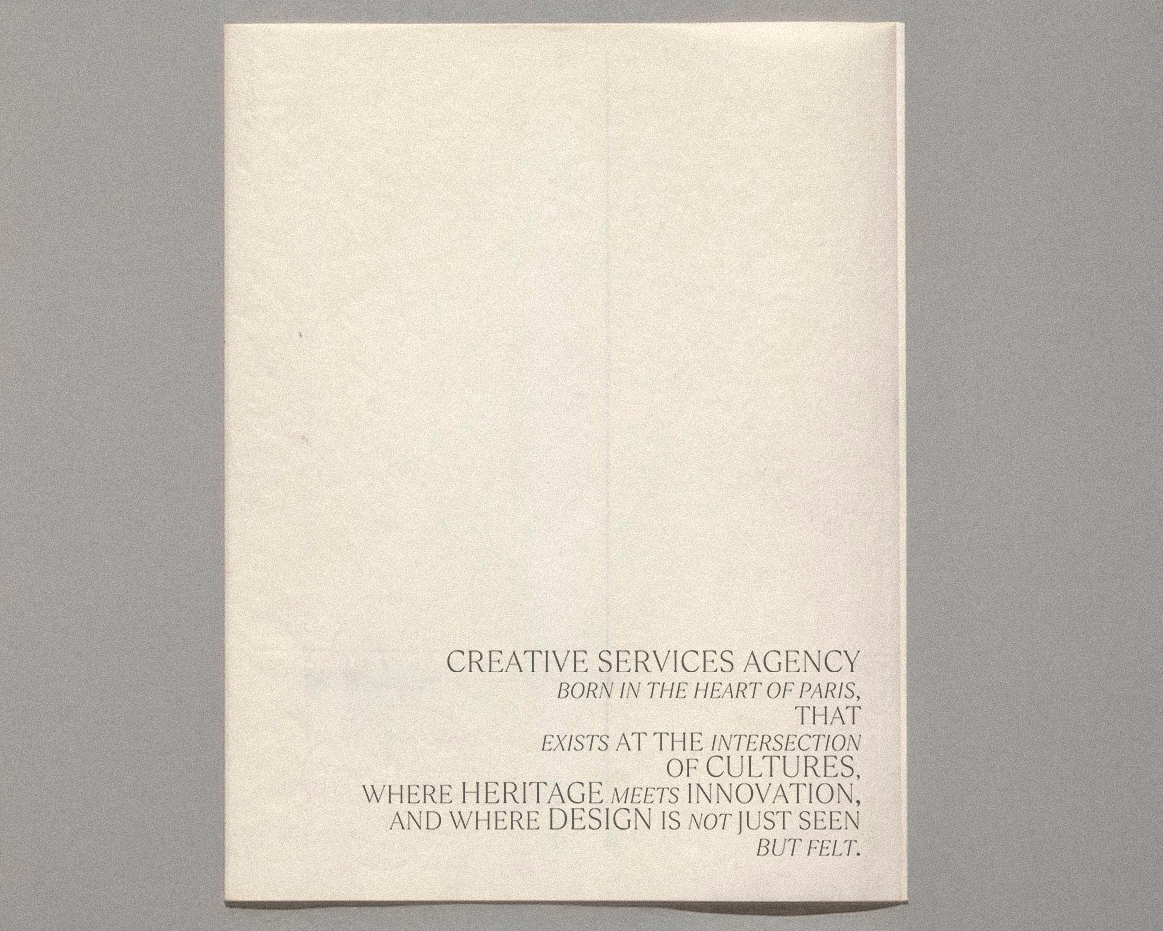 Based in Paris and founded on the belief that true creativity lies in precision, storytelling and cultural depth, the agency specializes in photography, design, strategic creative direction and so much more. For brands who seek timeless yet modern expressions of their identity.